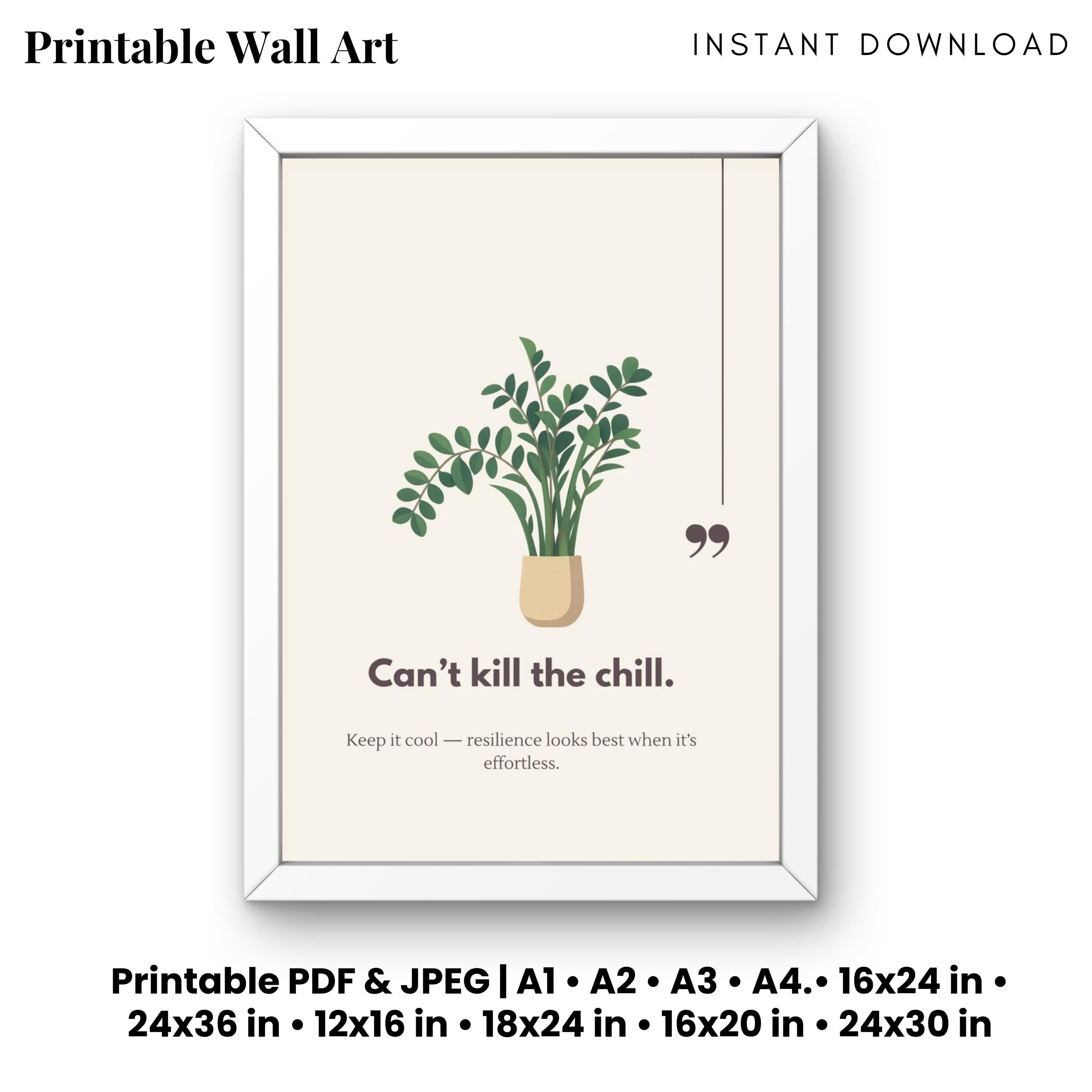 🌿 Can’t Kill the Chill — A vibe straight from the unbothered ZZ Plant. This minimalist, pastel-inspired printable wall art adds humor, motivation, and plant-parent energy to any space. Perfect for your home office, bedroom, dorm, or gallery wall.