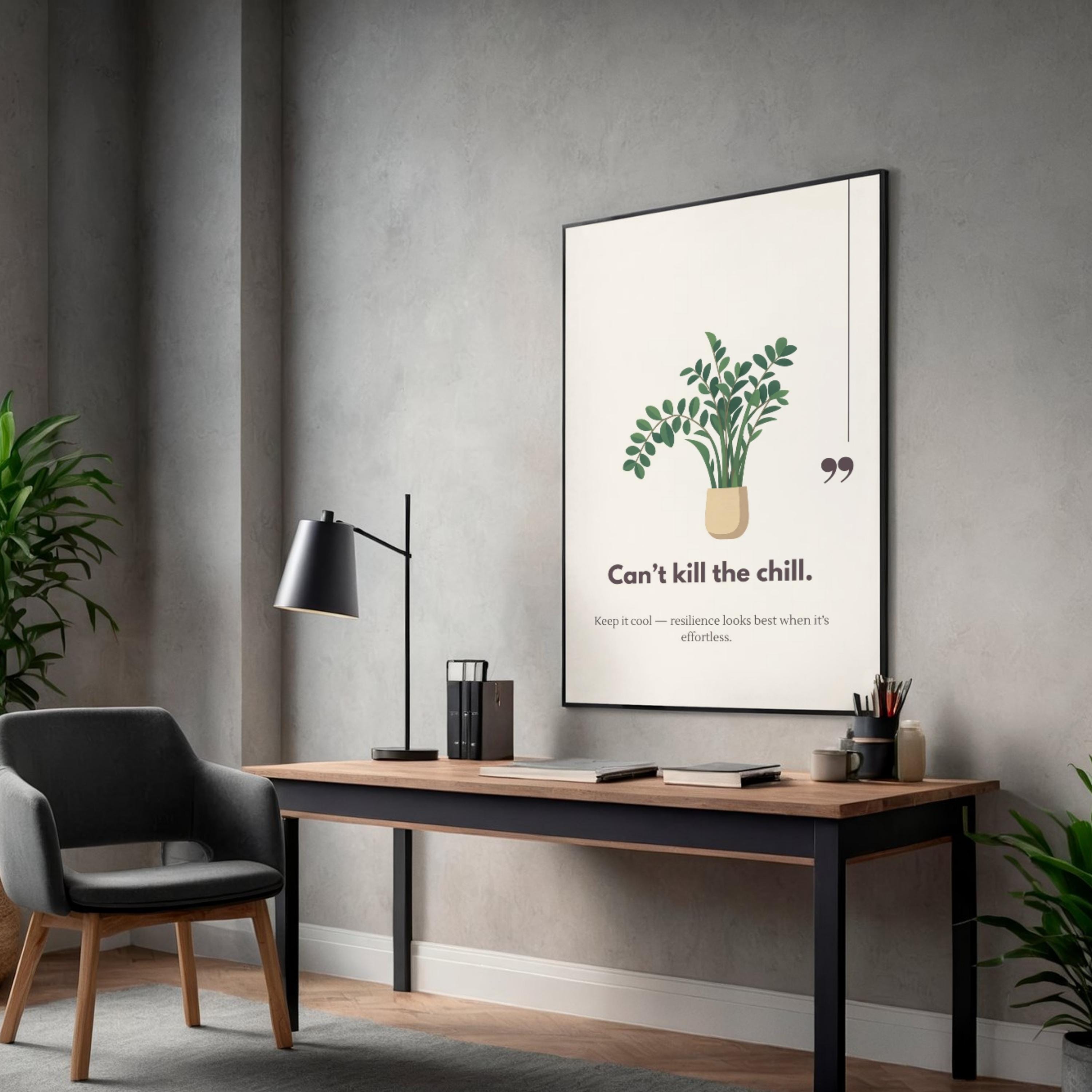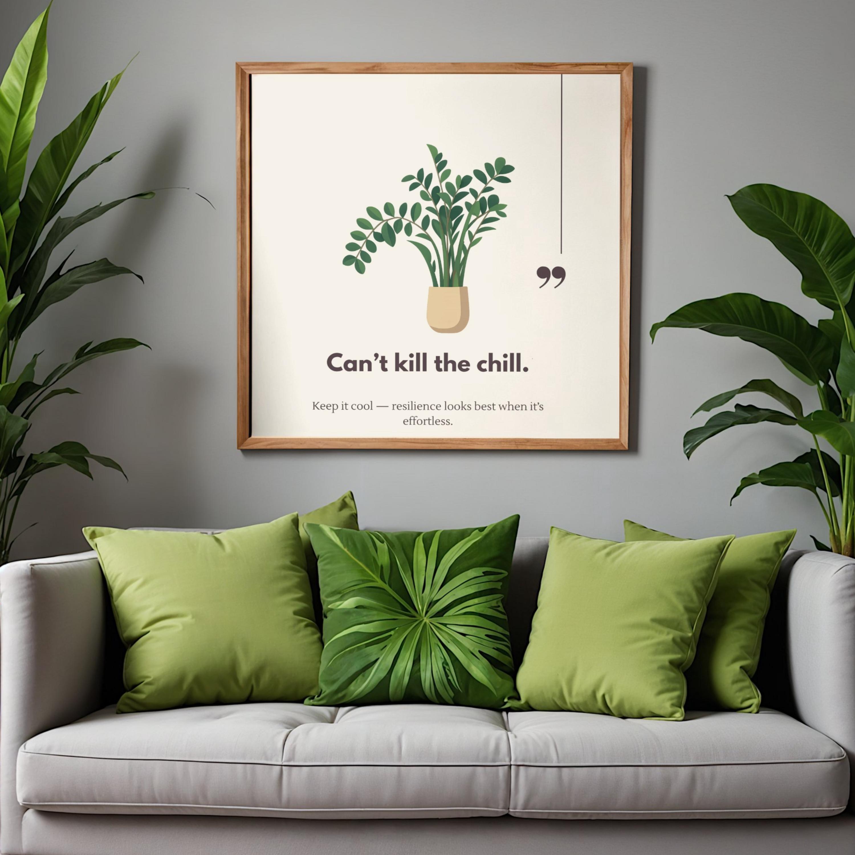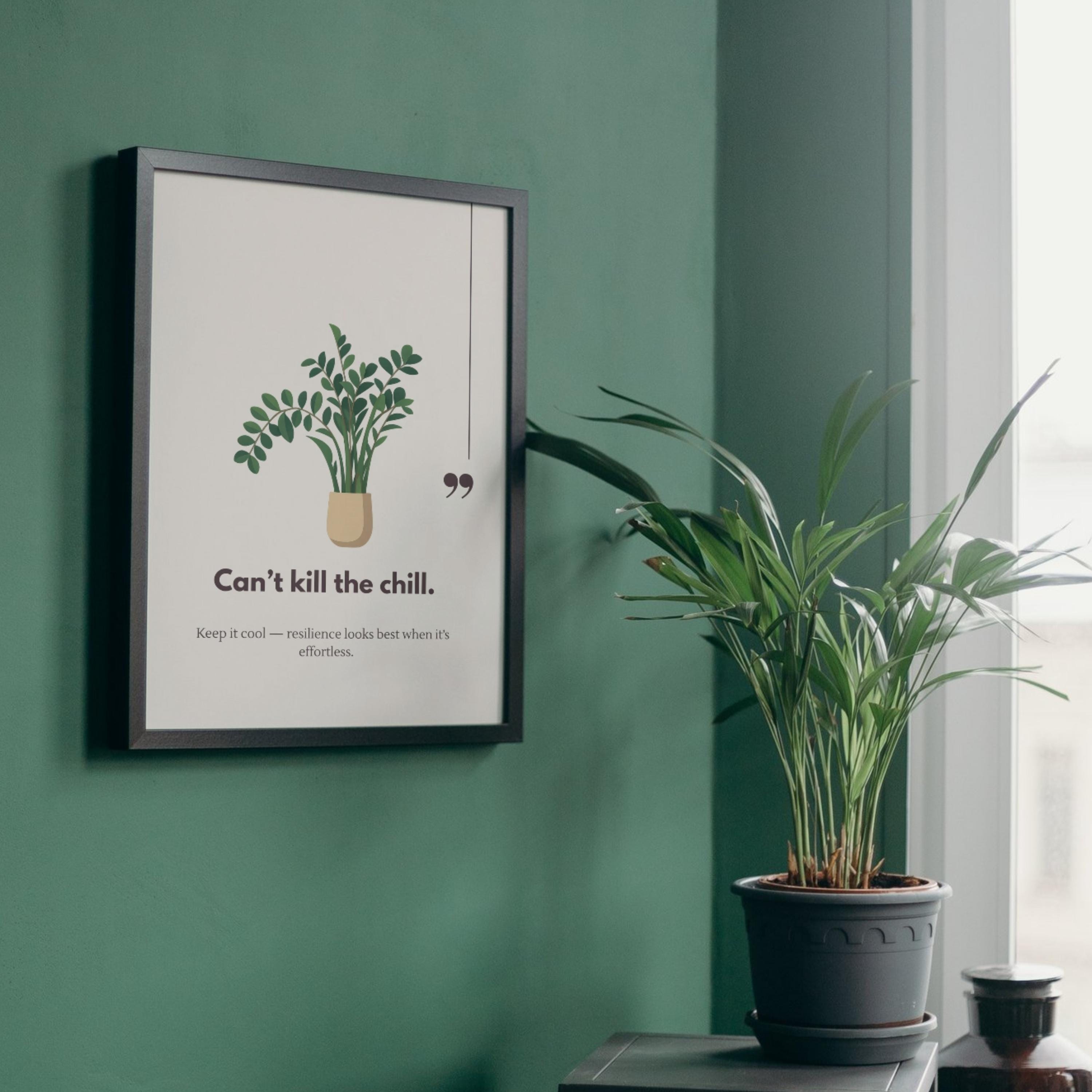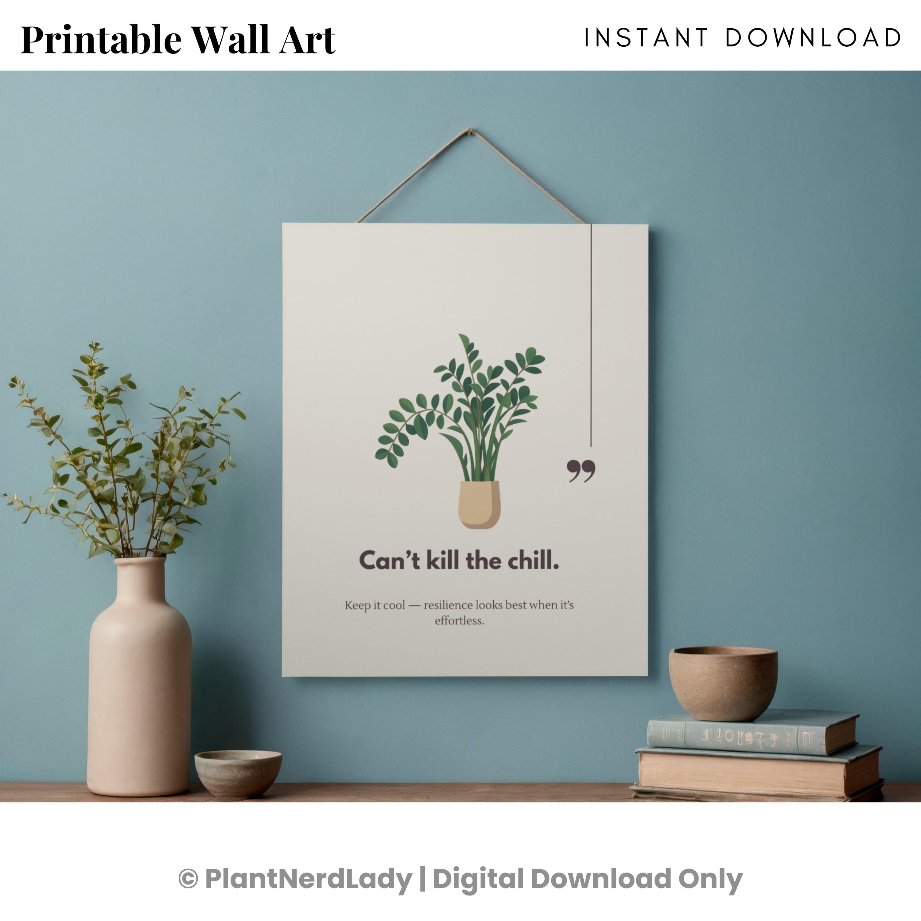 ZZ Plant “Can’t Kill the Chill” Funny Plant Quote Wall Art – Motivational Home Office Decor – Plant Lover Gift – Instant Download Art Print
