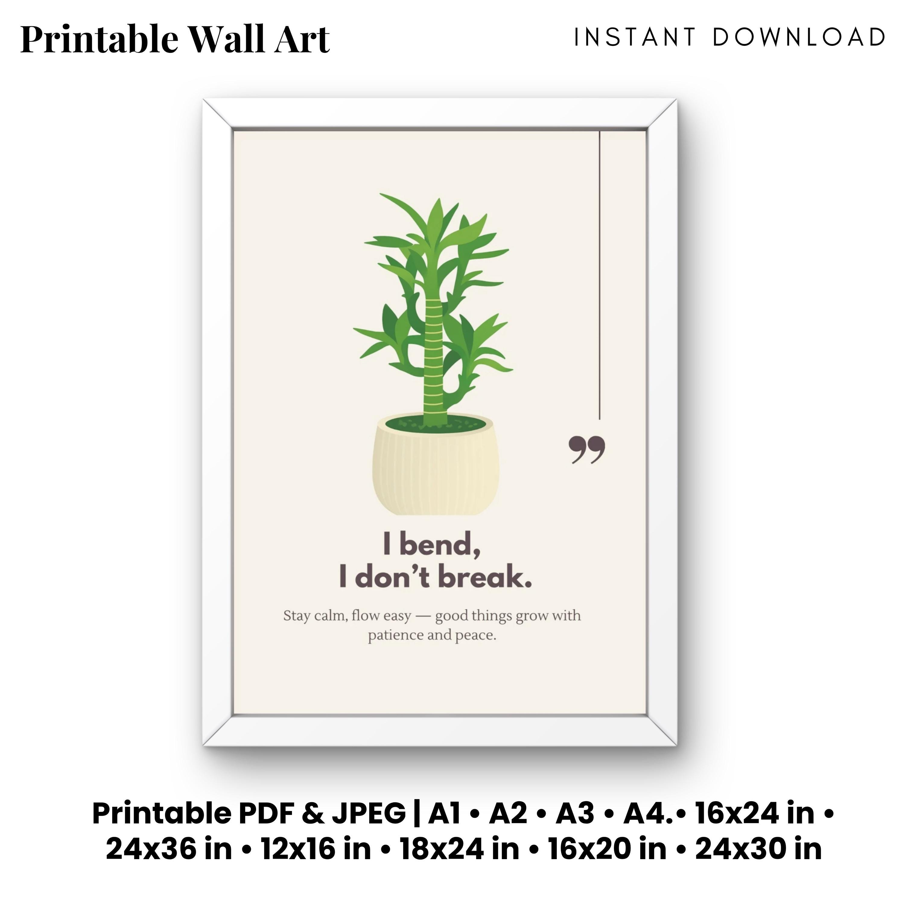 🌈 WHY YOU’LL LOVE IT: ✔ Inspirational, relatable quote with plant personality ✔ Soft pastel Lucky Bamboo illustration ✔ Simple, affordable way to refresh your decor ✔ Great as a standalone print or part of a gallery wall ✔ Perfect gift for plant lovers & positivity seekers ✔ Instant download — no waiting, no shipping