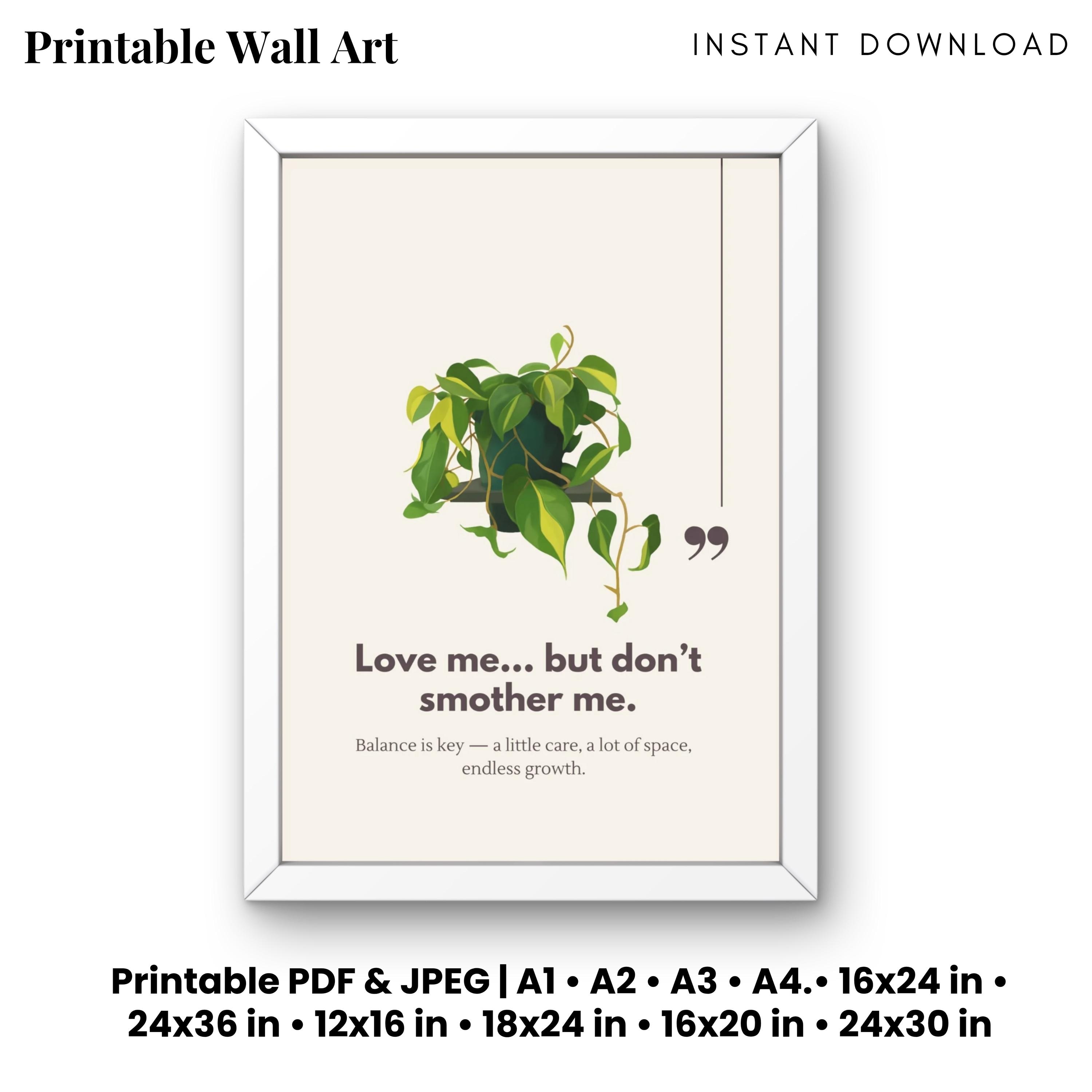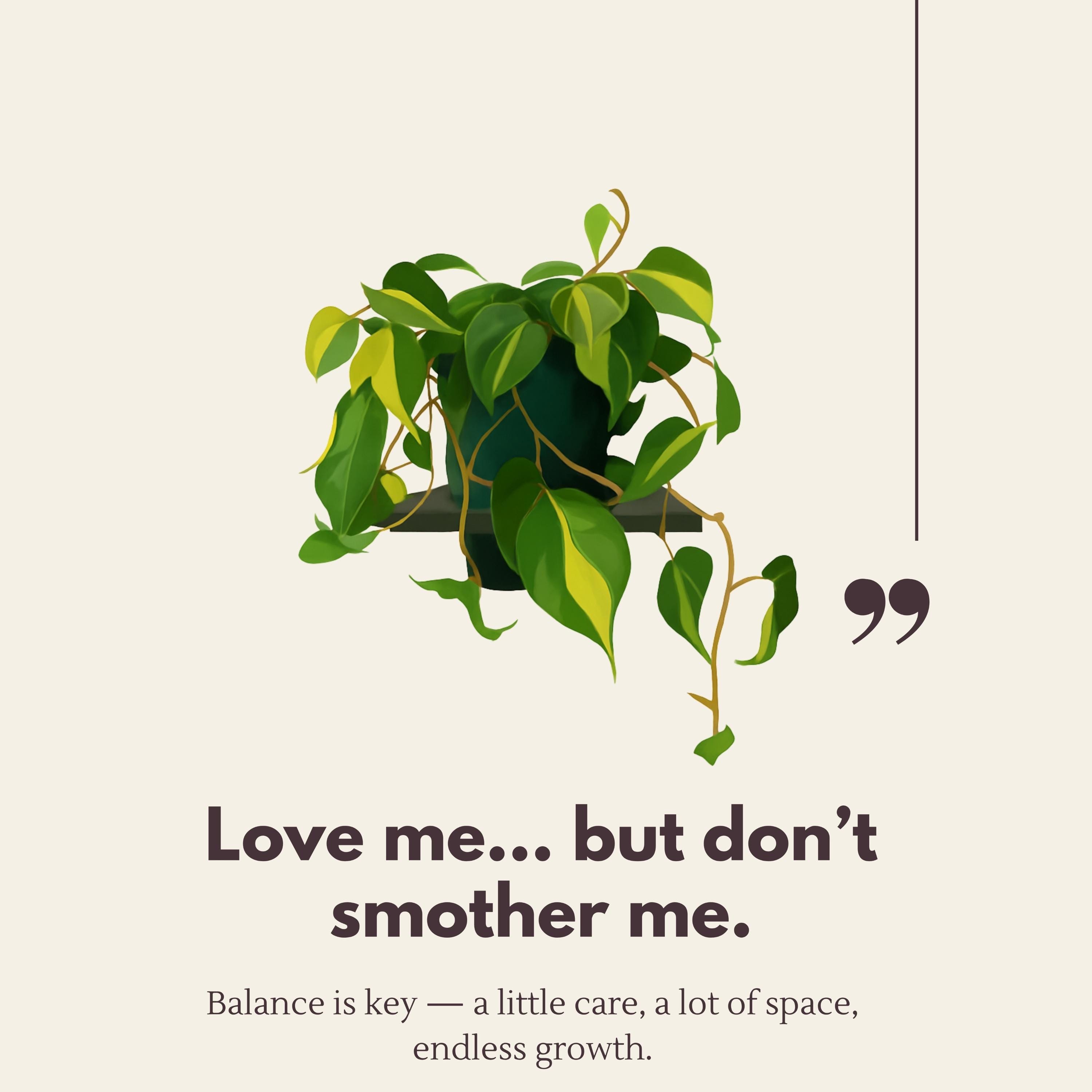 Celebrate healthy love, personal space, and plant-parent humor with this charming Heartleaf Philodendron printable. Known for its trailing vines and easygoing personality, this plant becomes the perfect messenger for a gentle reminder: ✨ Love is good… clinginess, not so much. ✨