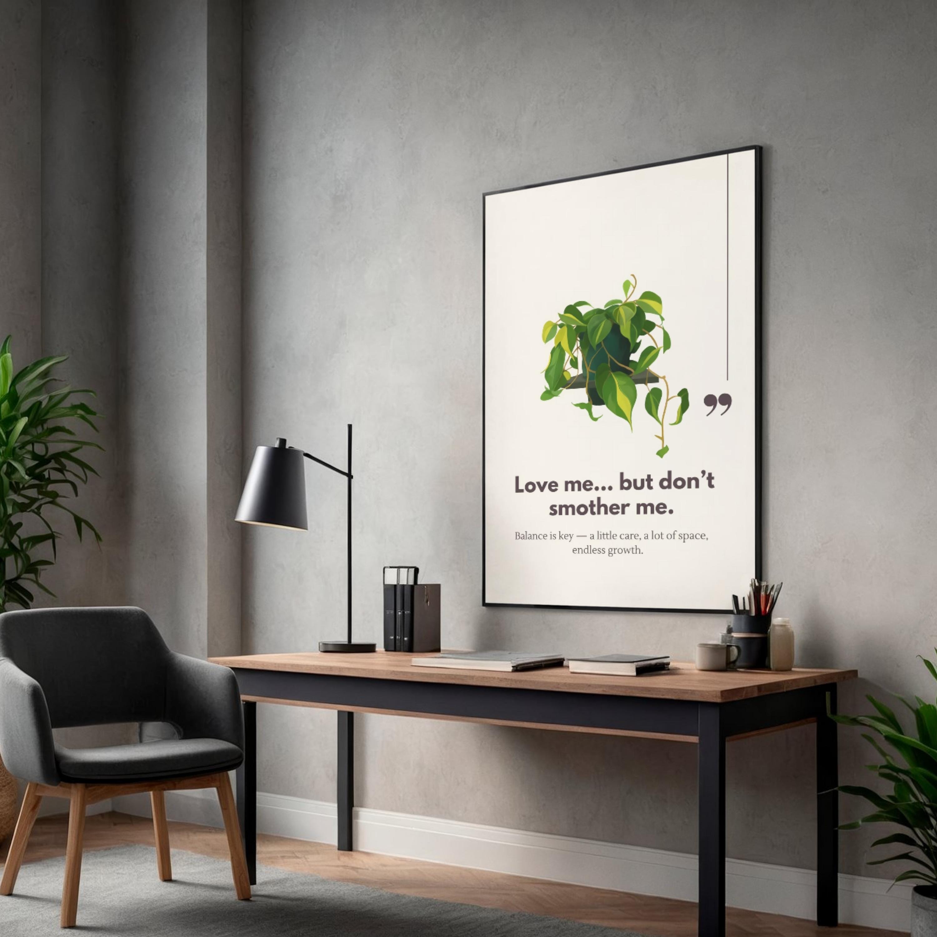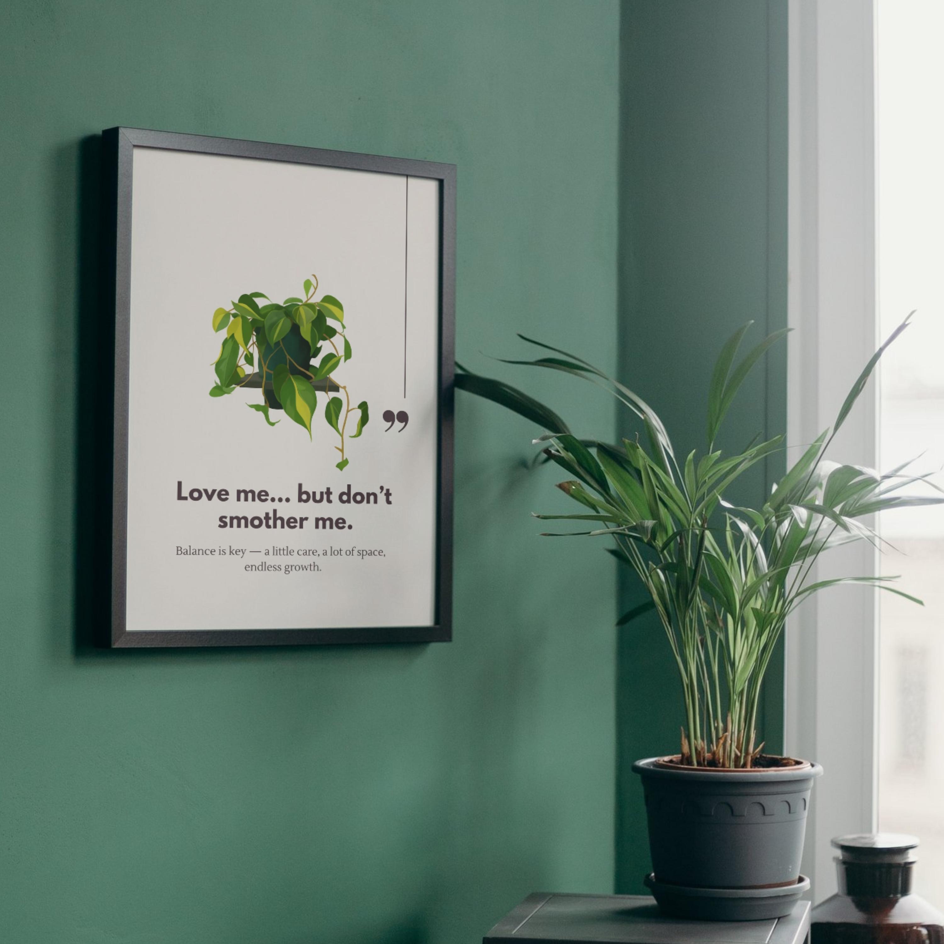 🌿 PERFECT FOR: • Living rooms, bedrooms & cozy corners • Home offices & creative workspaces • Gifts for plant lovers, couples & plant parents • Fans of trailing plants & philodendrons • Minimalist, modern, pastel or botanical interiors • Daily reminders to love with balance & good humor
