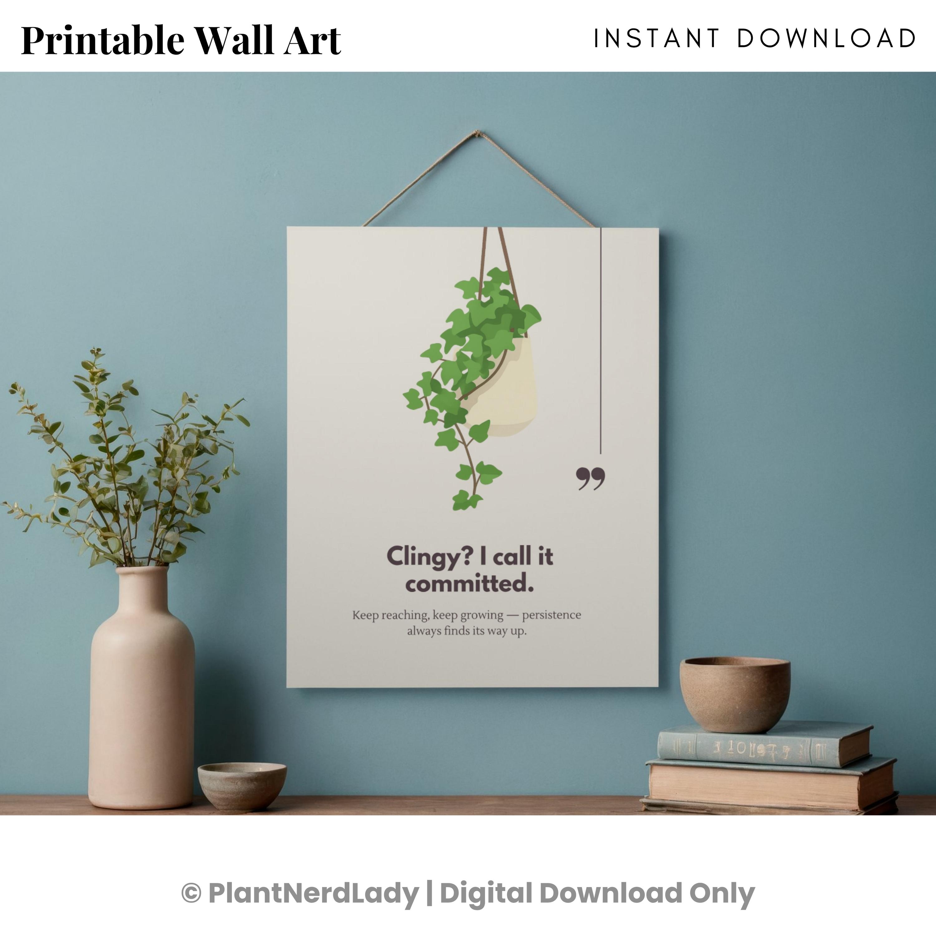 🌈 WHY YOU’LL LOVE IT: ✔ Playful, relatable quote with plant personality ✔ Aesthetic pastel English Ivy illustration ✔ Quick & affordable wall decor upgrade ✔ Perfect for gallery walls or standalone art ✔ Unique, humorous plant lover gift ✔ Instant download — no shipping or waiting