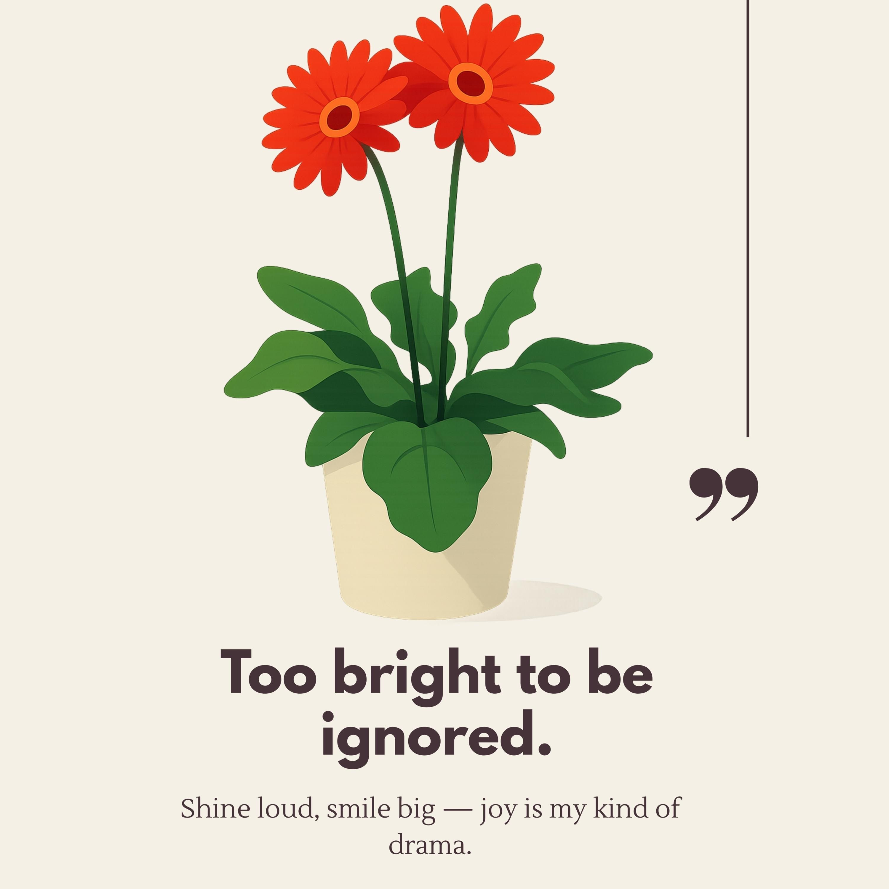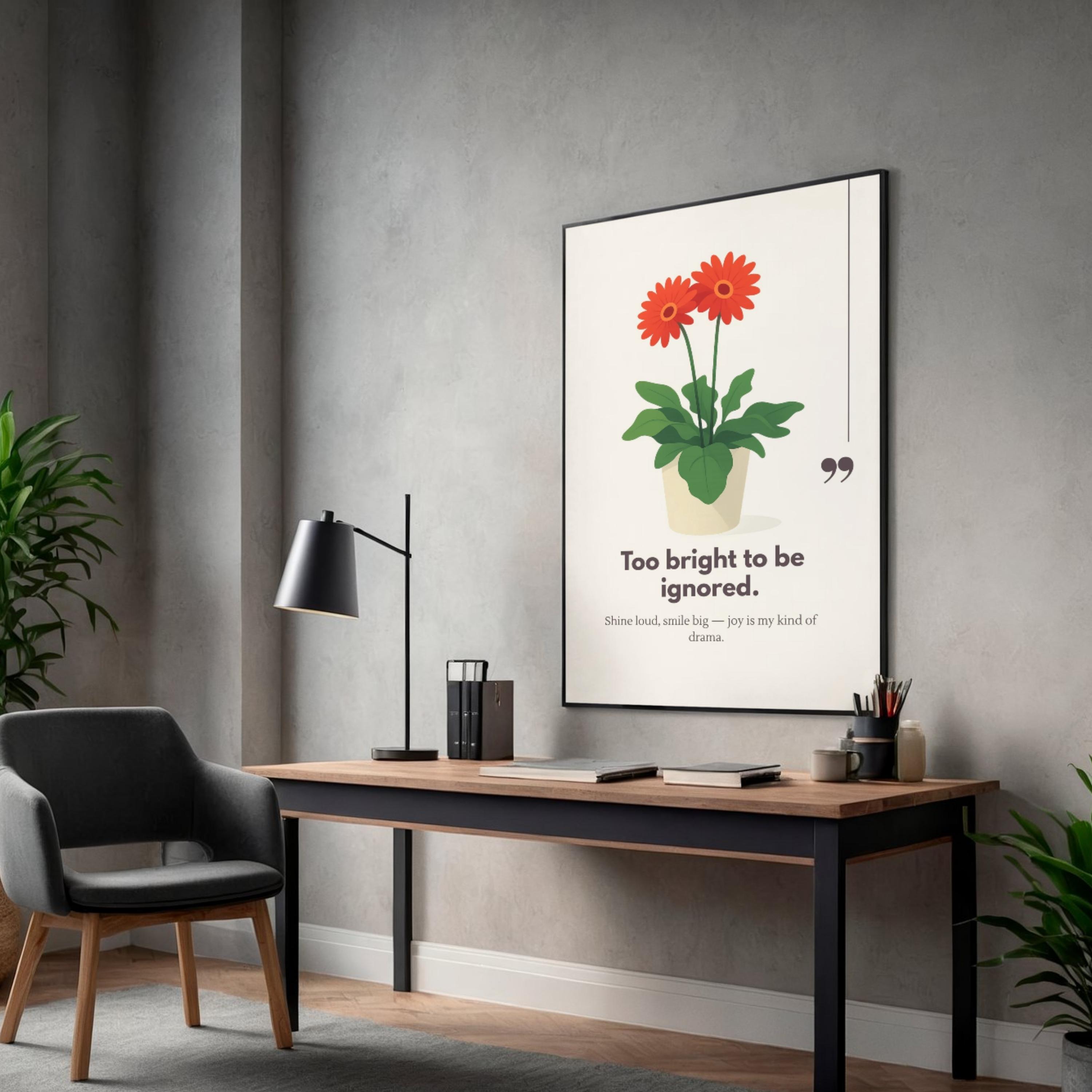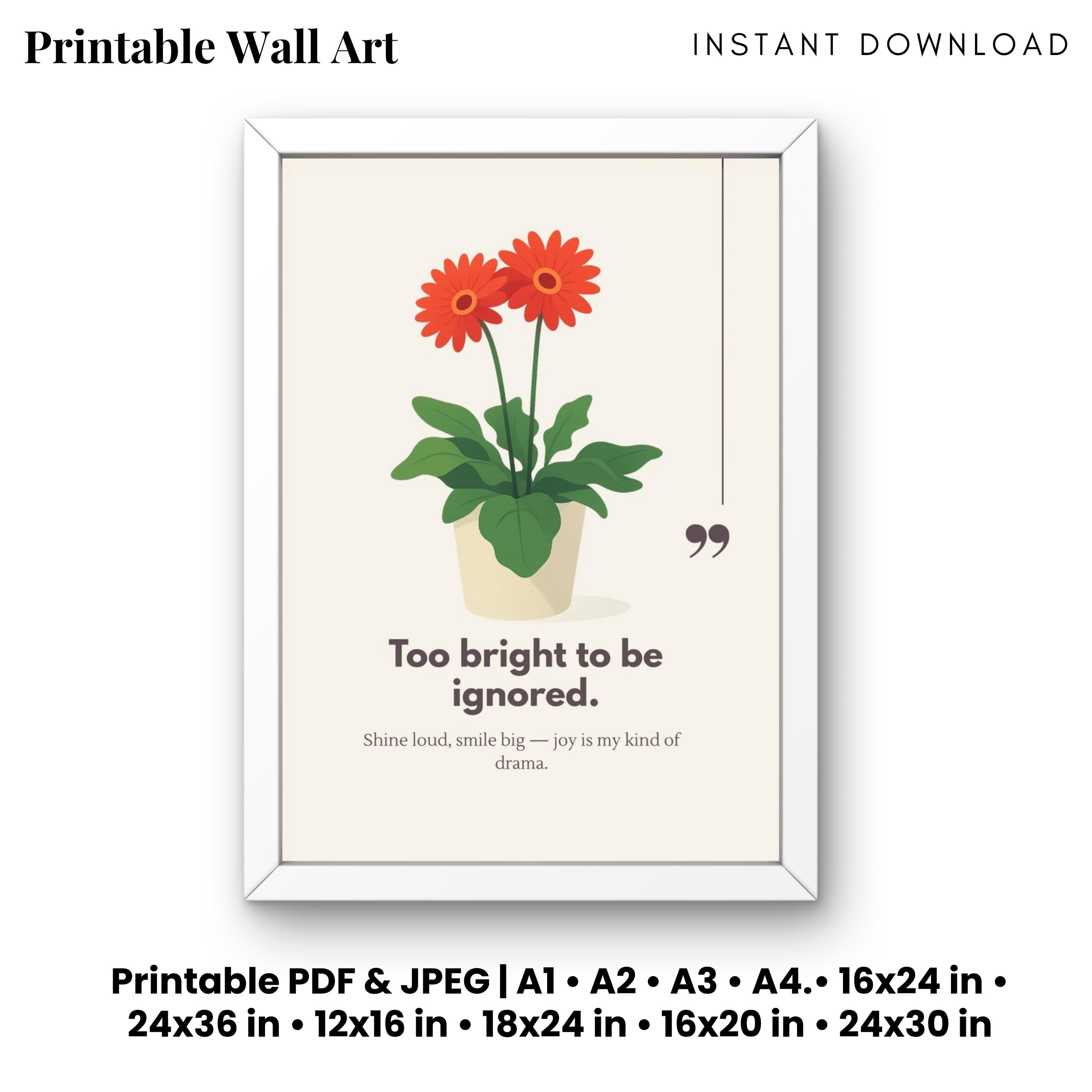 Let your walls bloom with confidence and color with this vibrant Gerbera Daisy printable. Known for its bold petals and impossible-to-miss presence, the Gerbera Daisy becomes the perfect symbol for standing out, shining loud, and being joyfully unforgettable.