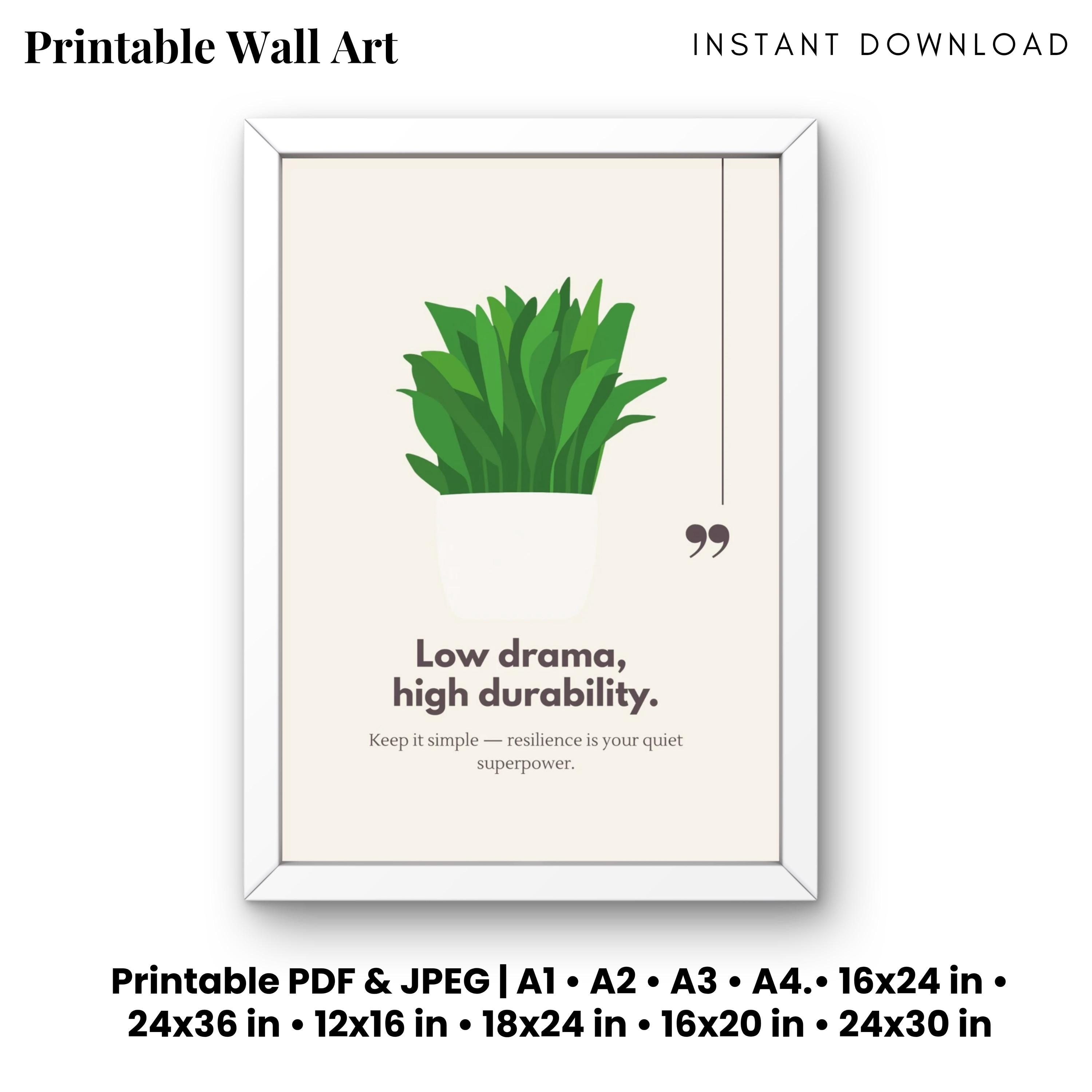 🌈 WHY YOU’LL LOVE IT: ✔ Calm, witty, resilience-themed plant quote ✔ Soft pastel Cast Iron Plant illustration ✔ Instant, affordable décor refresh ✔ Beautiful on gallery walls or as a standalone print ✔ Thoughtful & unique gift for plant lovers ✔ Instant download — no shipping or waiting