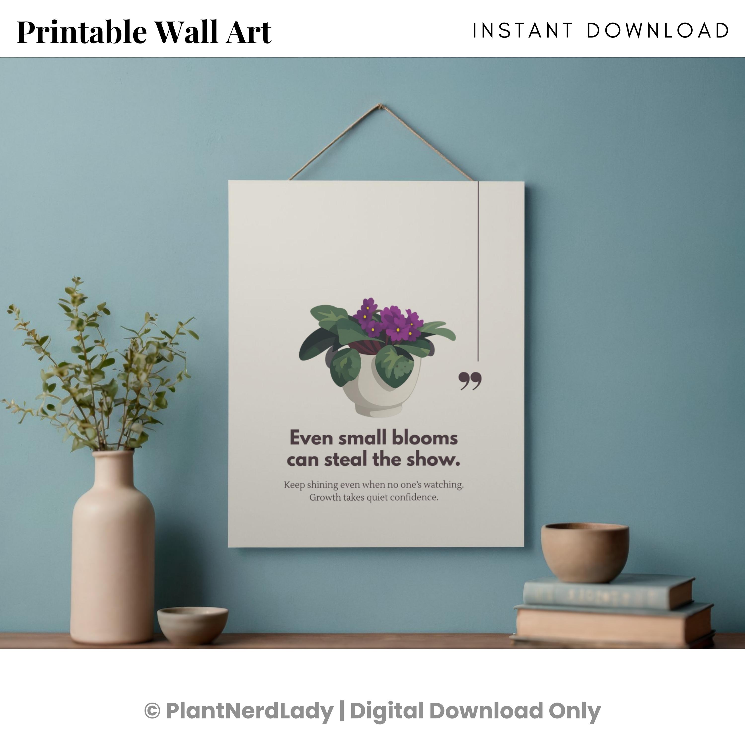 🌈 WHY YOU’LL LOVE IT: ✔ Sweet, confidence-boosting plant-inspired quote ✔ Soft pastel African Violet illustration ✔ Instant, affordable décor refresh ✔ Beautiful standalone piece or gallery wall addition ✔ Unique, heartfelt gift for plant lovers ✔ Instant download — no waiting, no shipping